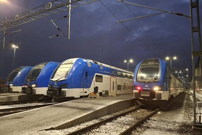 Tågflottan består av 53 dubbeldäckade ER1/DOSTO och 9 X50/Reginatåg.​